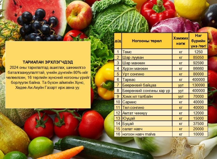 ТАРИАЛАН ЭРХЛЭГЧДЭД 2024 оны тарилалтад ашиглах, шинжилгээ баталгаажуулалттай, үнийн дүнгийн 80%-ийг чөлөөлсөн, 14 төрлийн хүнсний ногооны үрийг борлуулж байна. Та бүхэн аймгийн Хүнс, Хөдөө Аж Ахуйн Газарт ирж авна уу.